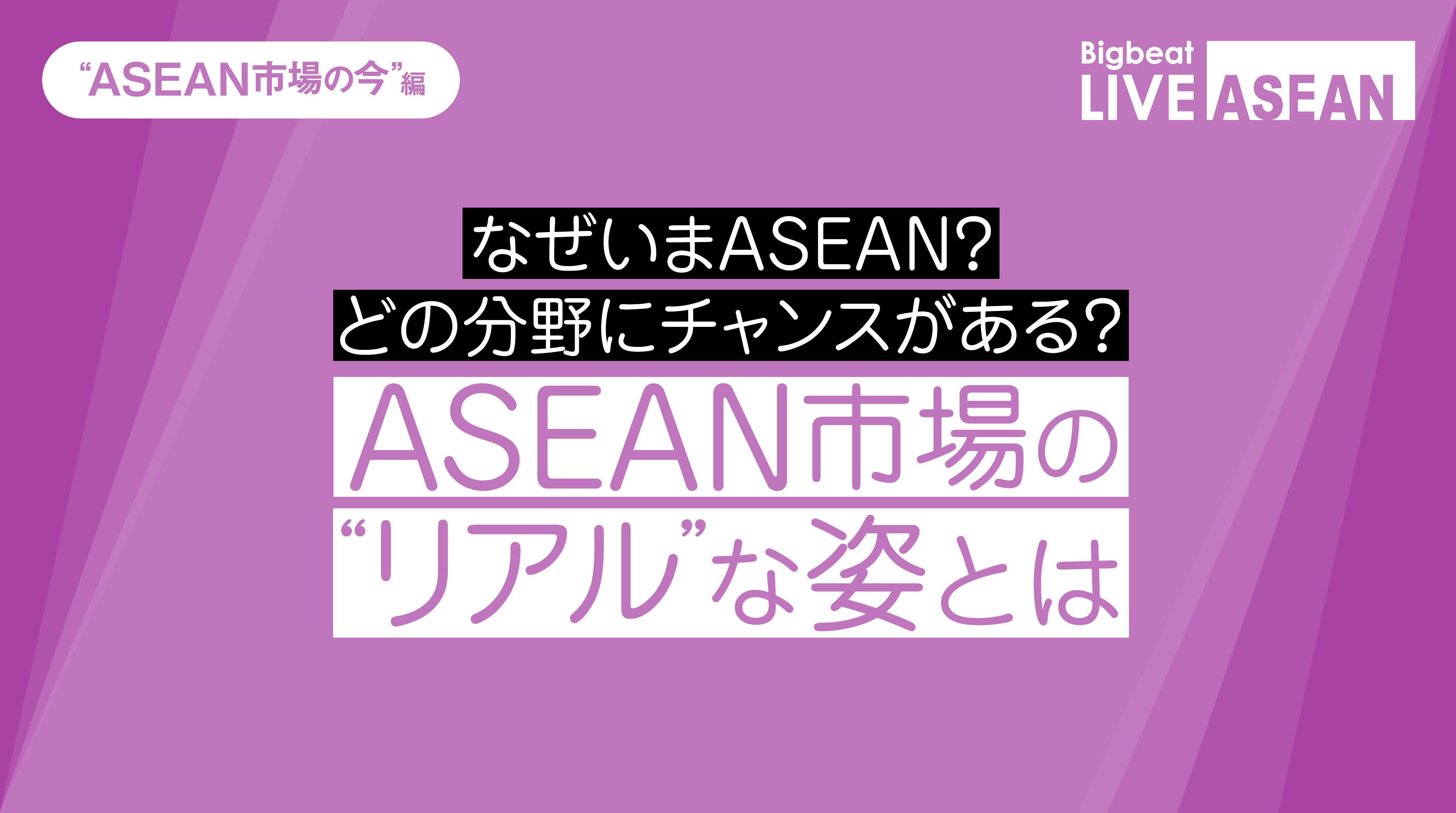 このBigbeat LIVE ASEANは、ASEANでのビジネスへ挑戦を続ける先駆者のリアルな奮闘をお届けし、次の新たな変化へのきっかけとなるための場を提供してまいりました。